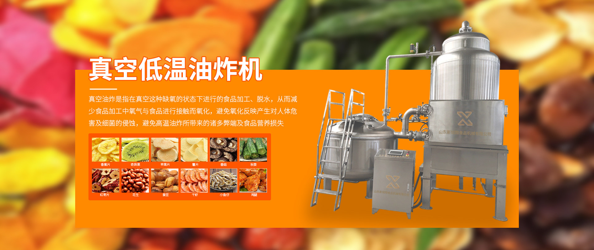 山東新銳翔食品機械有限公司位于舜帝故里-山東?諸城。是一家專業(yè)從事低溫高濕解凍設備、低溫真空油炸機、各種流水線、清洗流水線、真空凍干設備、果蔬脆片生產工藝、加工工藝、制造及銷售于一體的整線規(guī)劃企業(yè)。公司自創(chuàng)建以來,始終堅持科技創(chuàng)新理念,注重新技術、新產品的研制與開發(fā),可為客戶提供需求分析、項目設計、安裝調術培訓等解決方案。誠信致遠是我們一貫堅持的經營方針,良好的信譽更為企業(yè)的發(fā)展注入了強大的動力。為客戶提供的產品和更高品質的服務是我們不懈的追求。新銳翔全體員工始終以飽滿的熱情,真誠的合作態(tài)度,雙嬴的經營理念,熱忱歡迎新老客戶蒞臨指導洽談。